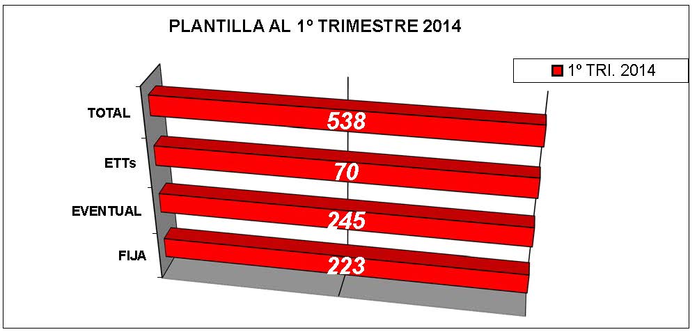 - La necesidad de potenciar el contrato indefinido, en detrimento de las diversas formas de contratación temporal, con una alta incidencia en la empresa que se acerca al 64%, urge a tomar medidas que den estabilidad a la plantilla