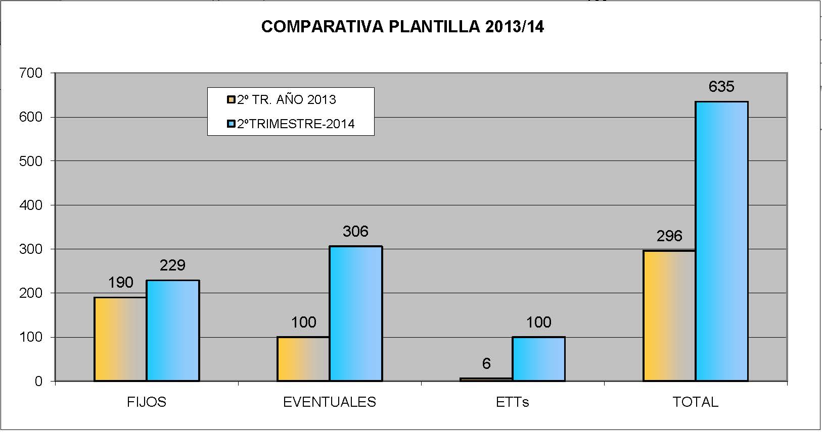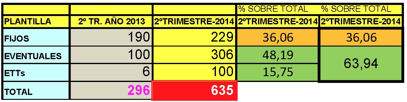 - Antes de terminar el año la plantilla de ETTs debe bajar en un 60% y pasar a ser contratos directos por la empresa.